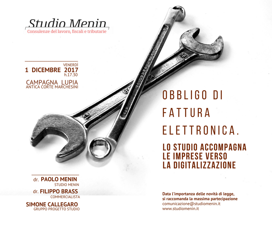 1 dicembre 2017, seminario sulla fatturazione elettronica